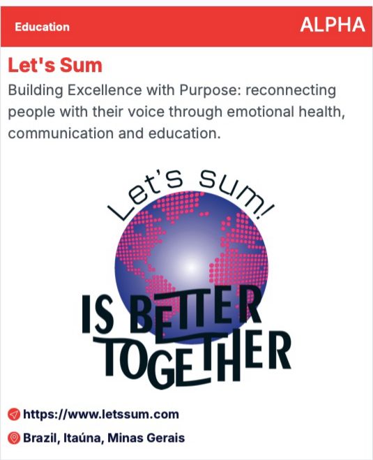 A Let’s Sum se constrói na interseção entre educação, autoconhecimento, saúde mental, comunicação e impacto social, conectando empresas, profissionais, propósitos e projetos para gerar inovação com sentido e transformação social real. Vem comigo?
